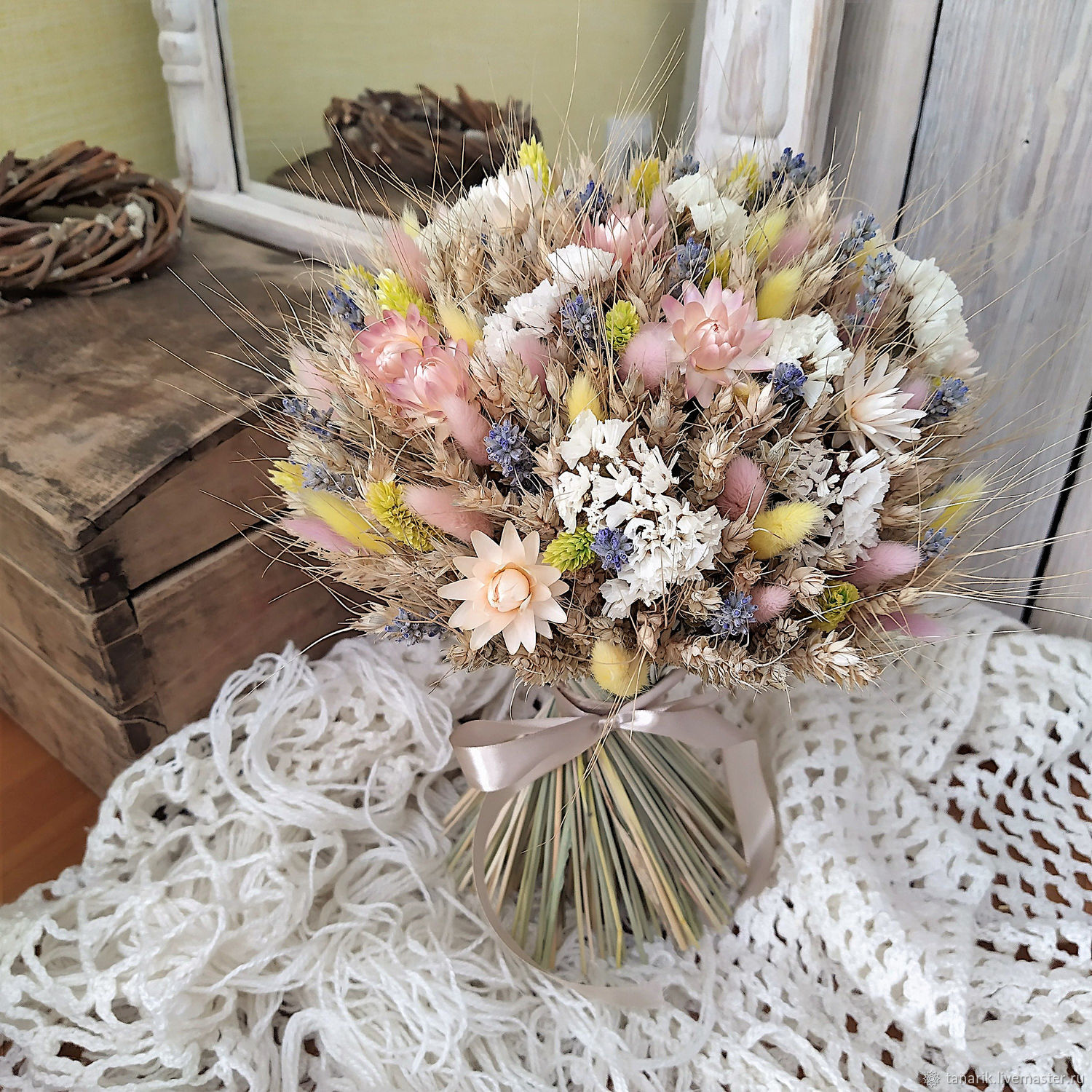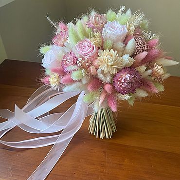 Букет из сухоцветов и стабилизированных цветов — идеальный подарок, если вы хотите выделиться среди обычных букетов цветов и чтобы подаренный вами букет долго еще радовал вашу любимую.